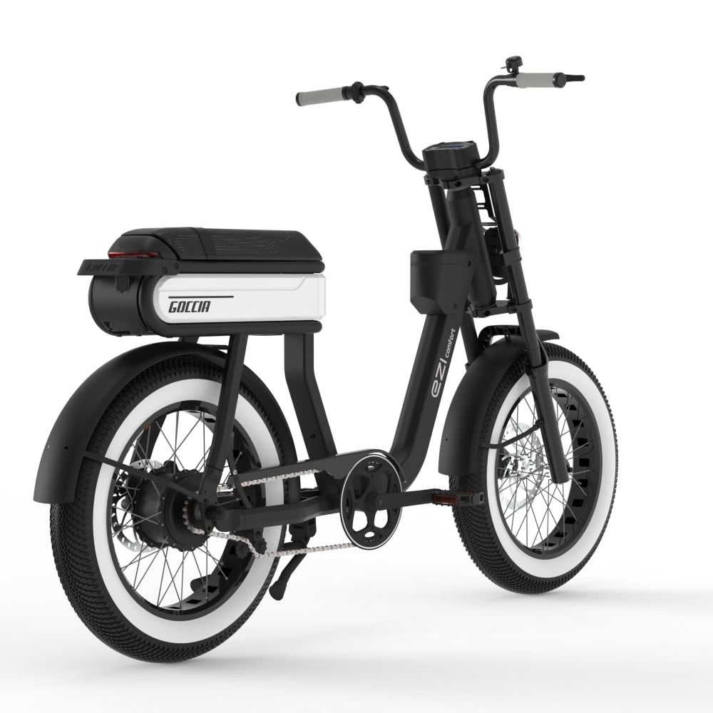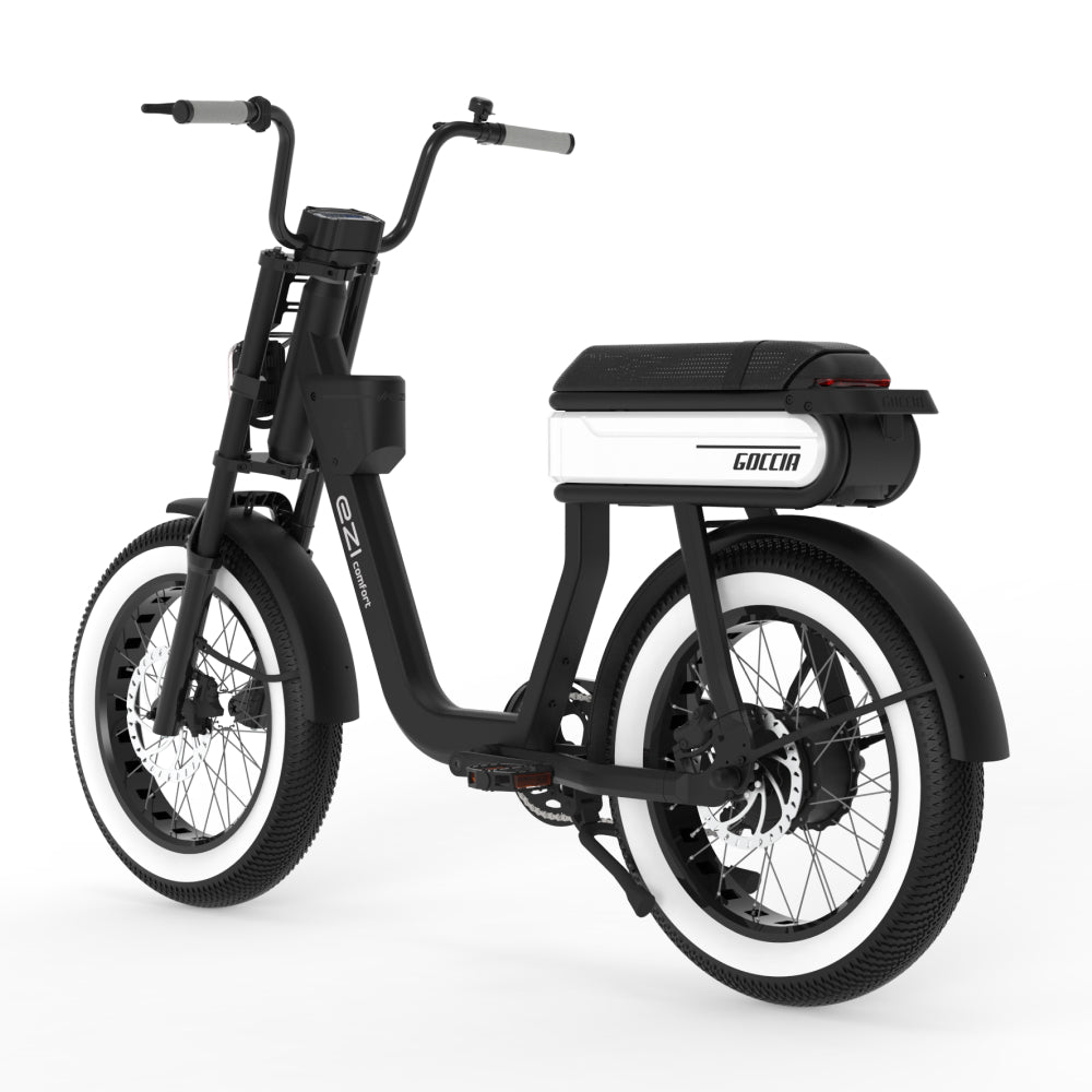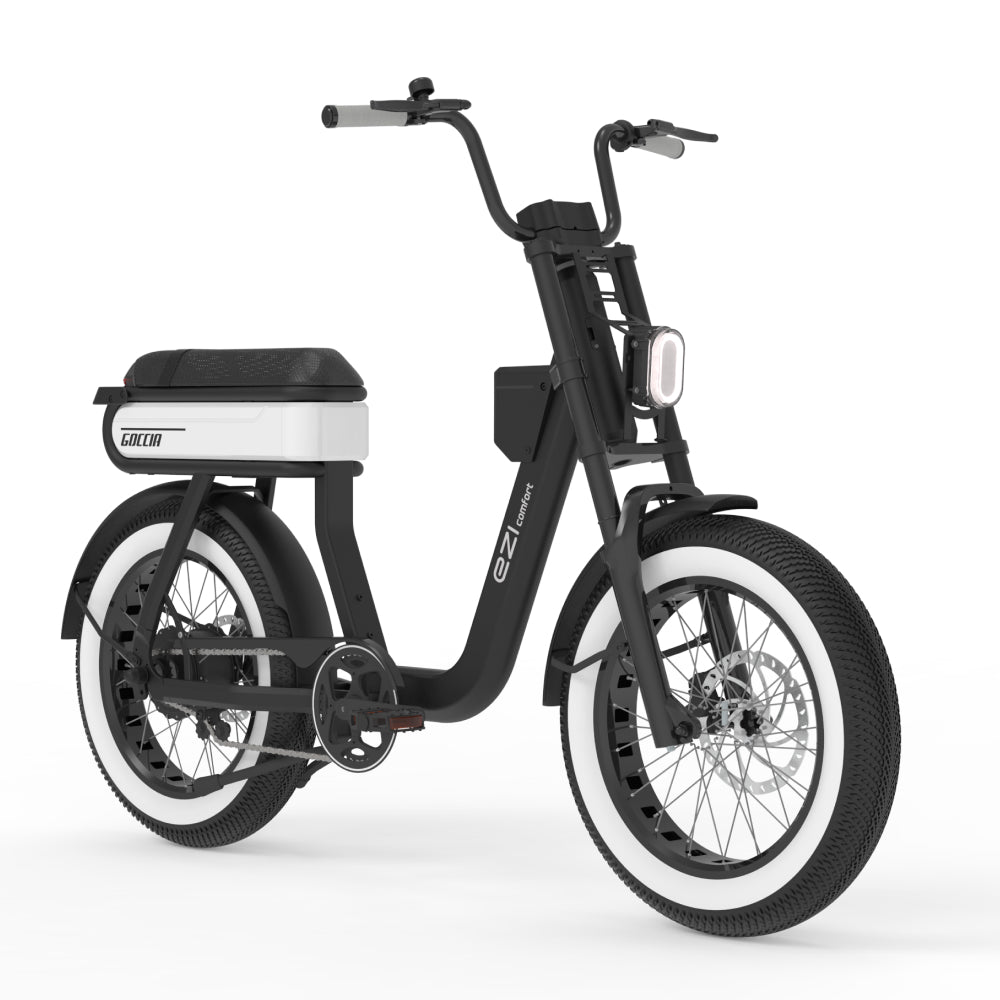 De AGM Goccia Comfort in stijlvol wit is een elektrische fatbike die comfort, kracht en veelzijdigheid perfect combineert. Met zijn brede banden en geveerde voorvork biedt deze e-bike uitstekende grip en stabiliteit, zowel op verharde wegen als onverharde paden.