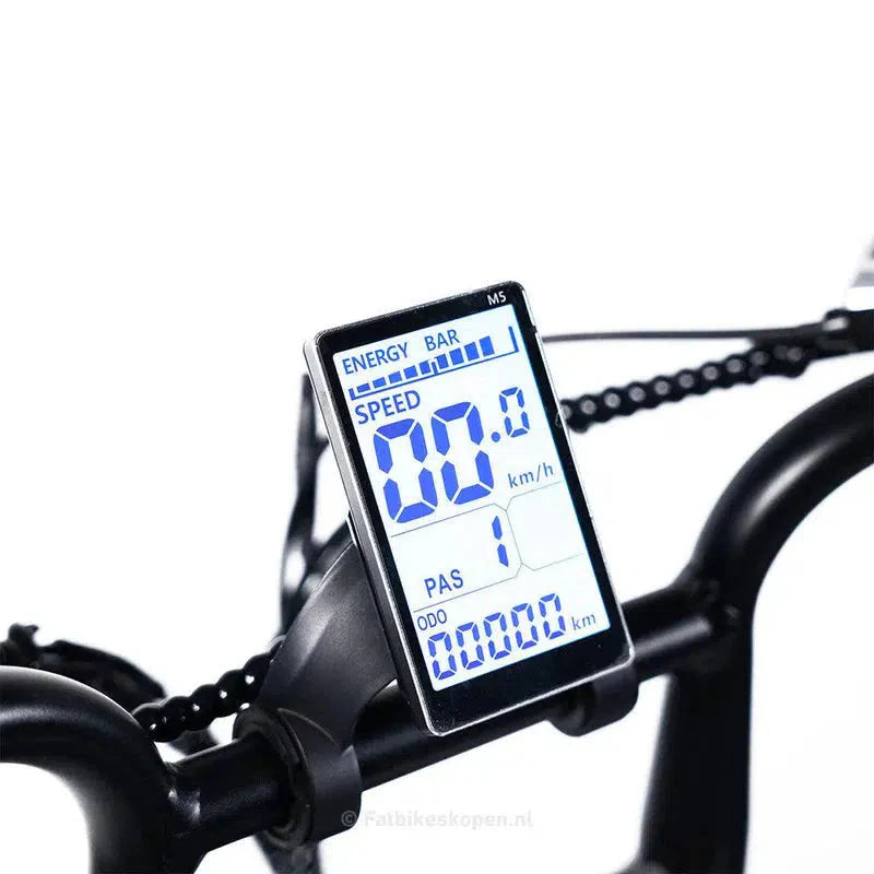 Dankzij de twee accu's hoef je je nooit zorgen te maken over lege batterijen, zelfs niet tijdens extra lange ritten. Hierdoor heeft deze fatbike een actieradius tot maar liefst 120 kilometer!